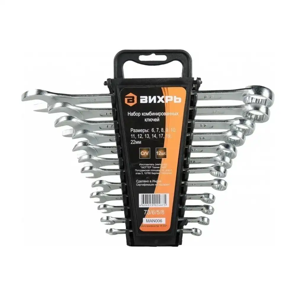 официальная гарантия производителя, Вихрь, www.vihr.su, хромованадиевая сталь (CrV), 12, 73/6/5/8, комбинированный, 6 мм, 7 мм, 8 мм, 9 мм, 10 мм, 11 мм, 12 мм, 13 мм, 14 мм, 17 мм, 19 мм, 22 мм