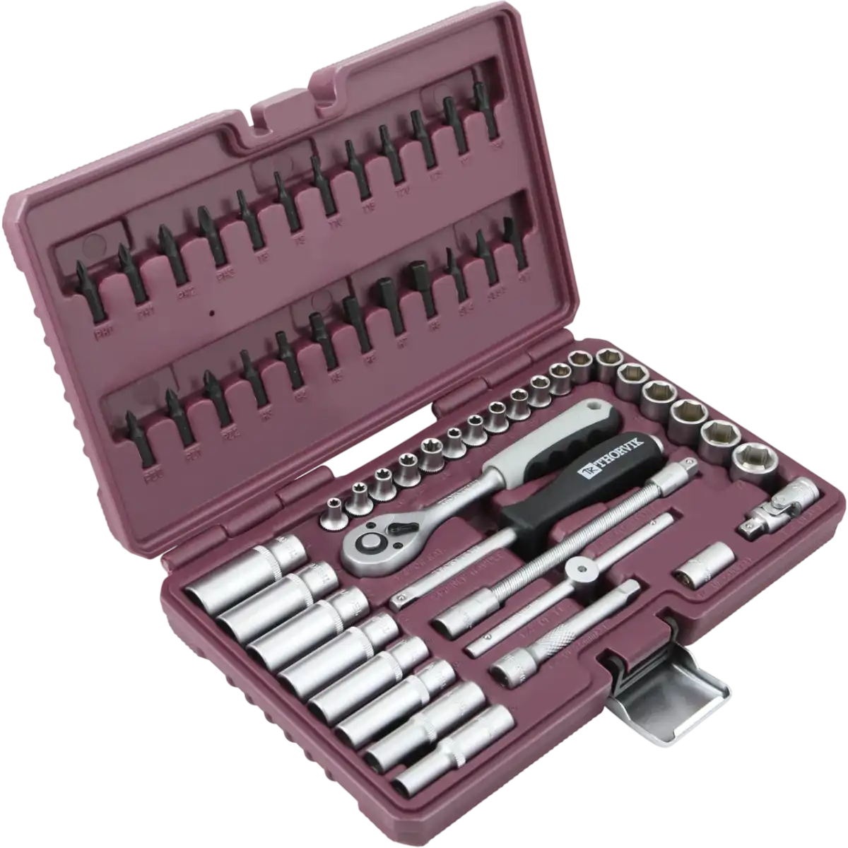 автомобильный набор инструментов, количество предметов в наборе: 77 шт., присоединительный размер: 1/2', 1/4', размер торцевых головок: 4-32 мм, кейс