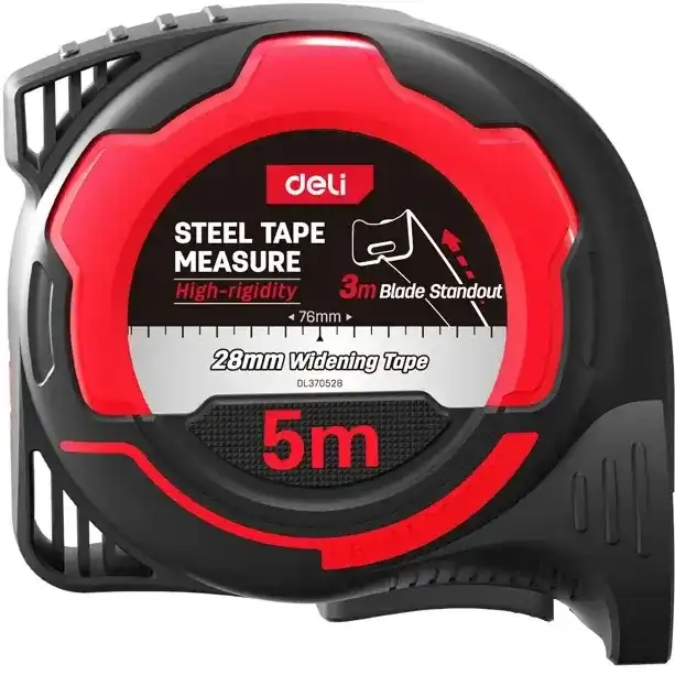 официальная гарантия производителя, Deli, www.deliworld.com, сантиметры, рулетка, 5 м, II, фиксация ленты, 19, HT8519L, чёрный