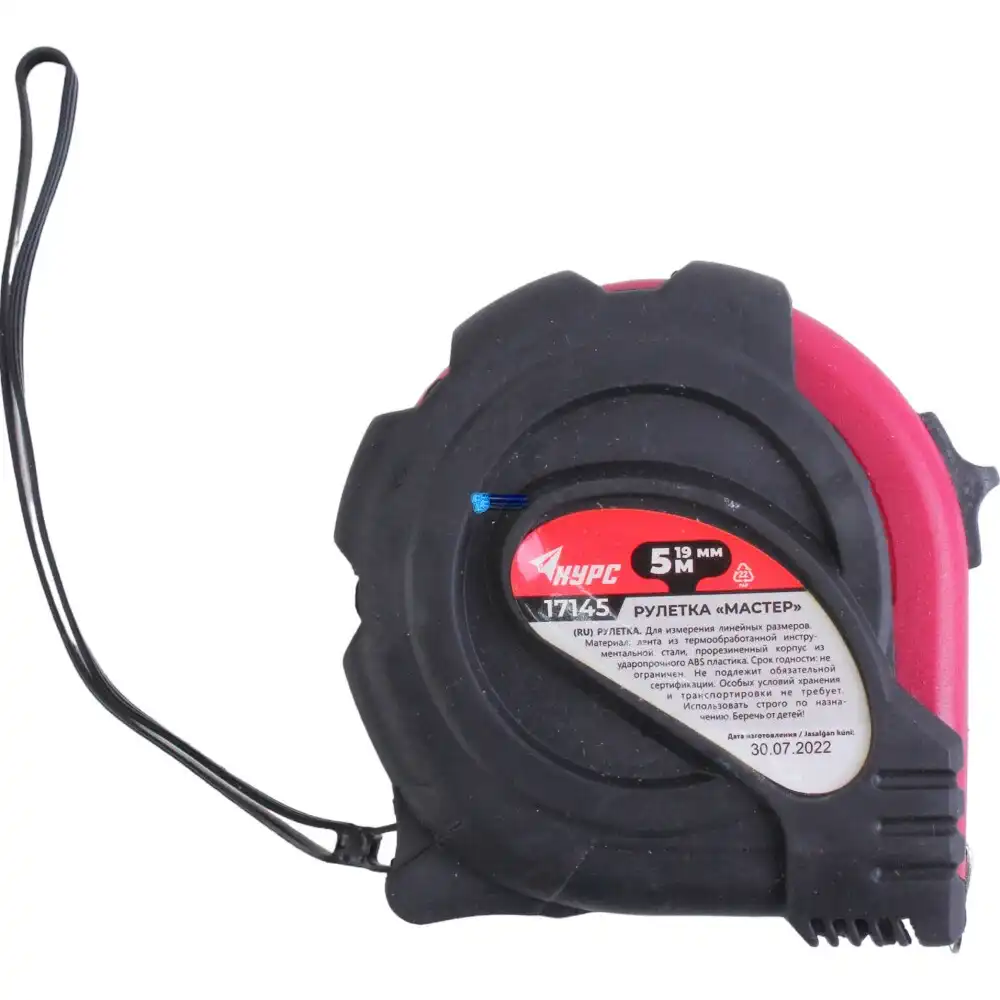 рулетка, длина 5 м, ширина 19 мм, измеряет в сантиметрах, фиксация ленты, чёрная лента