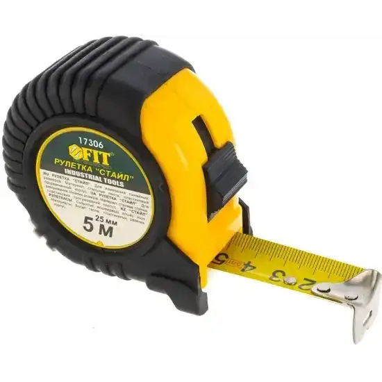 официальная гарантия производителя, сантиметры, жёлтый, 25, рулетка, 5 м, FIT, www.instrument-fit.ru, 1 мм, 17306, клипса для крепления на ремень, фиксация ленты