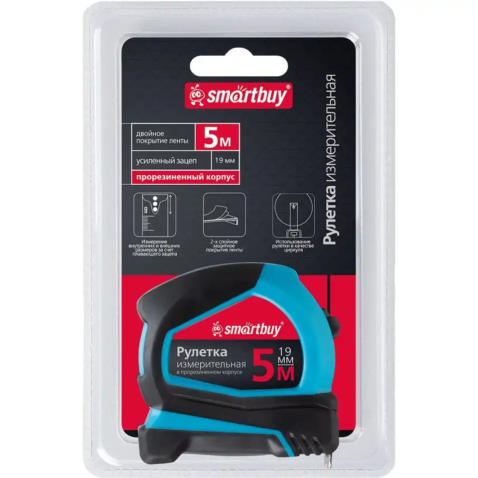 официальная гарантия производителя, SmartBuy, www.smartbuy-russia.ru, сантиметры, жёлтый, 5 м, клипса для крепления на ремень, обрезиненный корпус, фиксация ленты, 19, 1 мм, усиленный зацеп, SBT-MTP-519P5