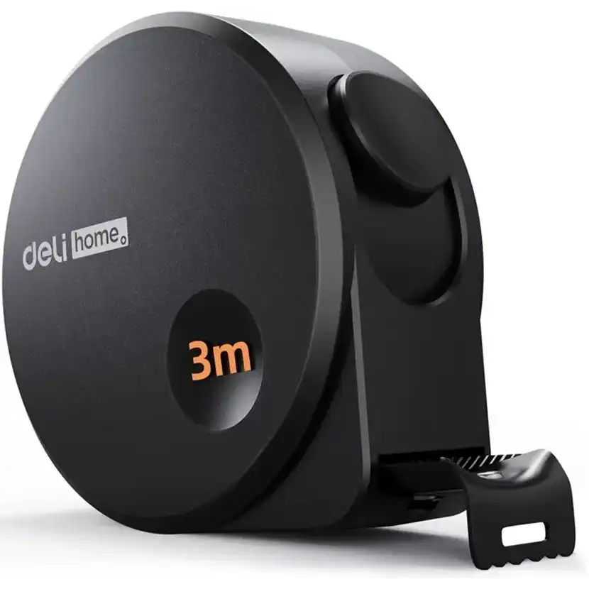 официальная гарантия производителя, Deli, www.deliworld.com, сантиметры, рулетка, фиксация ленты, 3 м, 16, 1 мм, чёрный, краска, HT8316