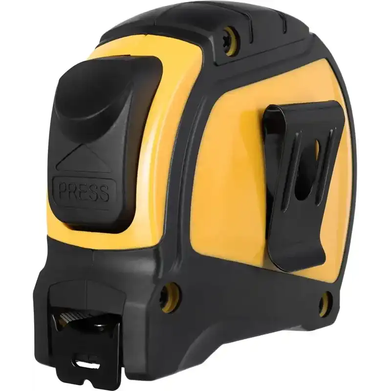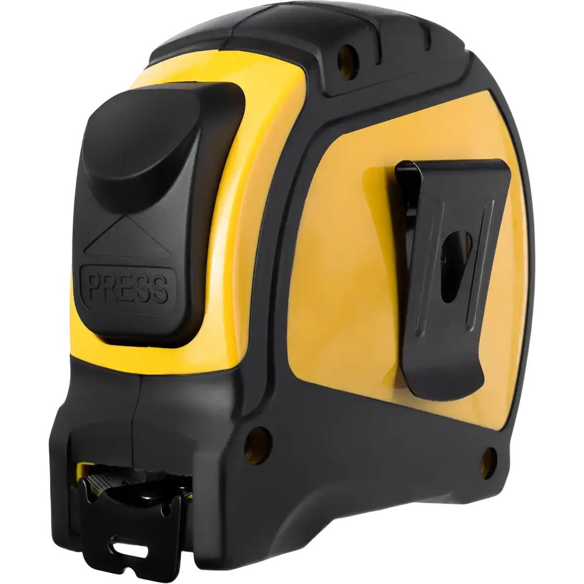 рулетка, длина 5 м, ширина 25 мм, измеряет в сантиметрах, клипса для крепления на ремень, фиксация ленты, обрезиненный корпус, жёлтая лента