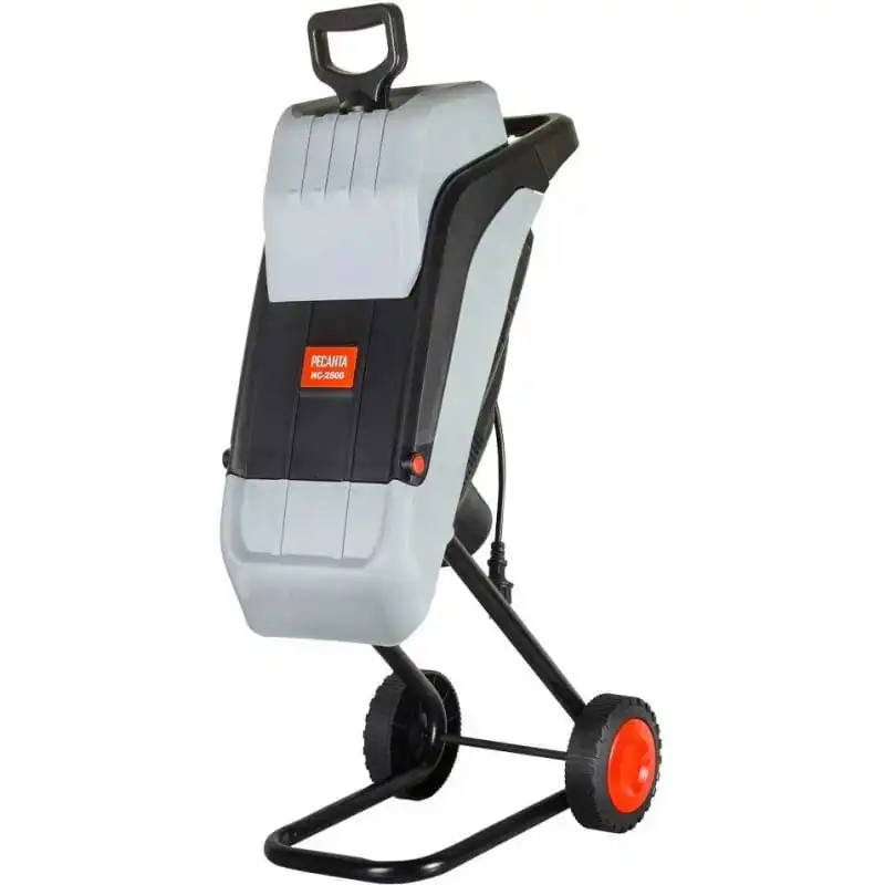 измельчение веток и листьев, электрический двигатель 2 кВт, ножевая система измельчения, диаметр веток 40 мм, производительность 85 кг/ч, объем контейнера 55 л
