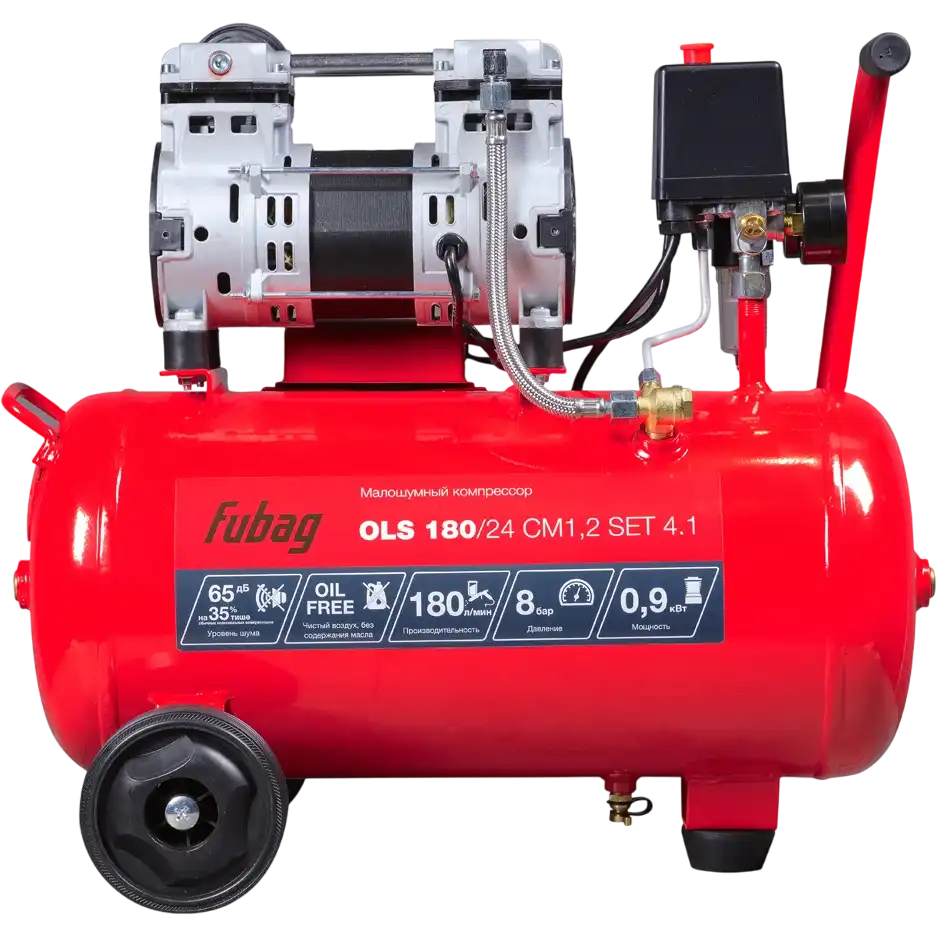 компрессор поршневой коаксиальный, безмасляный, 140 л/мин, давление 8 бар, ресивер на 6 л