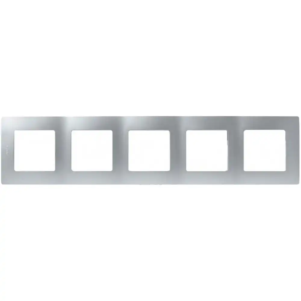 рамка, серия Etika, 5 постов, вертикальный/горизонтальный монтаж, IP20, цвет: серебристый