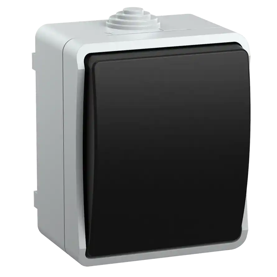 накладной выключатель, 1 клавиша, винтовое подключение, IP54, чёрный, серый