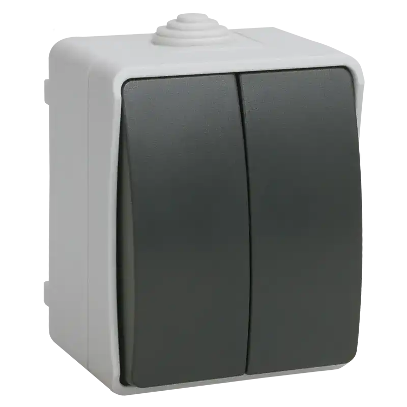 накладной выключатель, 2 клавиши, винтовое подключение, IP54, серый
