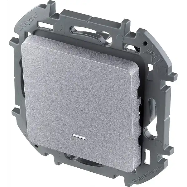 встраиваемый переключатель, 1 клавиша, винтовое подключение, подсветка, IP20, серый