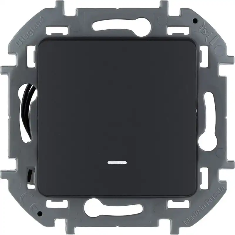 встраиваемый переключатель, 1 клавиша, винтовое подключение, подсветка, IP20, чёрный