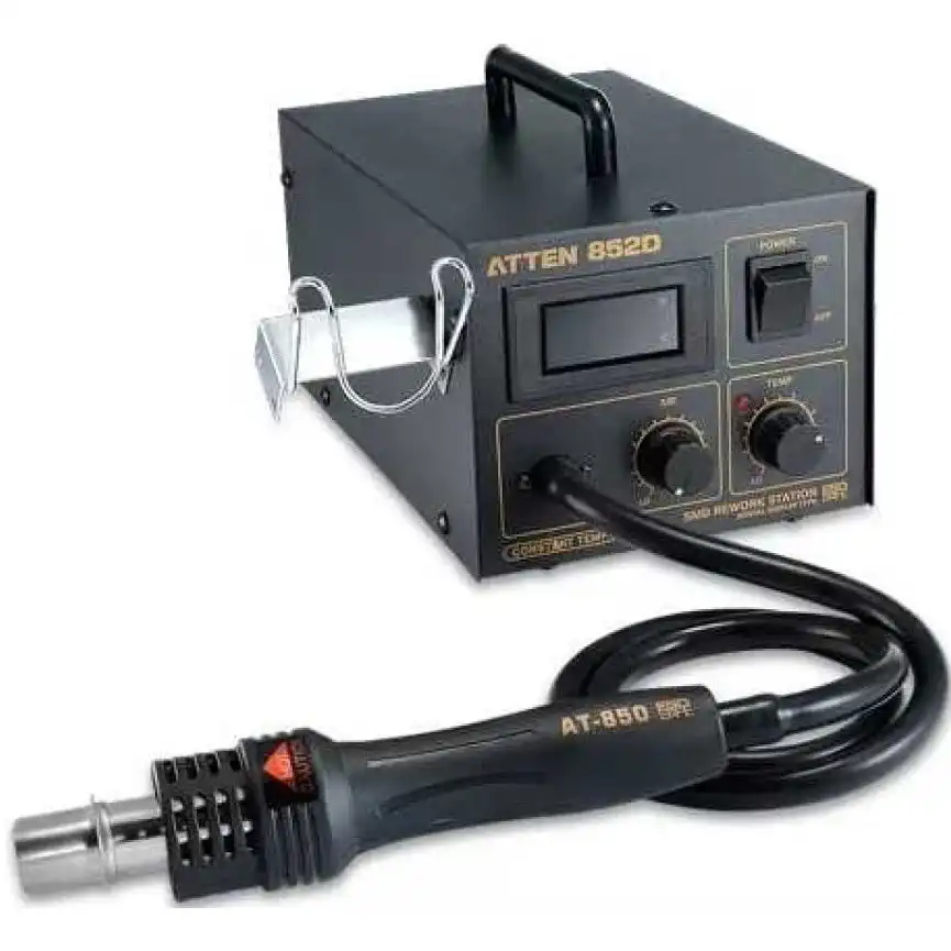 да, 550, официальная гарантия производителя, 220, 500, Atten, www.atten.com, 1, металл/пластик, комплектация: паяльная станция, документация, держатель термофена, термофен, 2 насадки для термофена, кабель питания, сопло, AT852D, термовоздушная паяльная станция