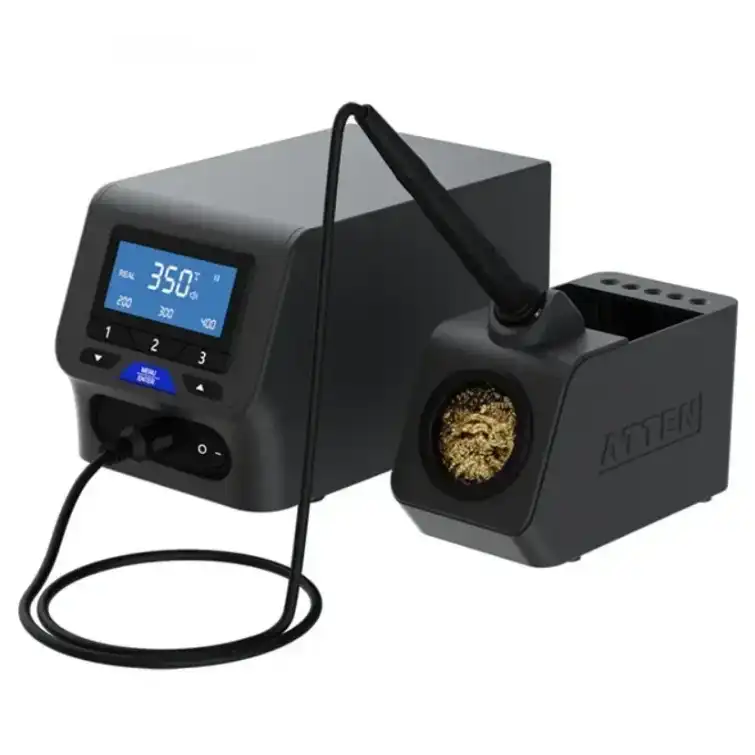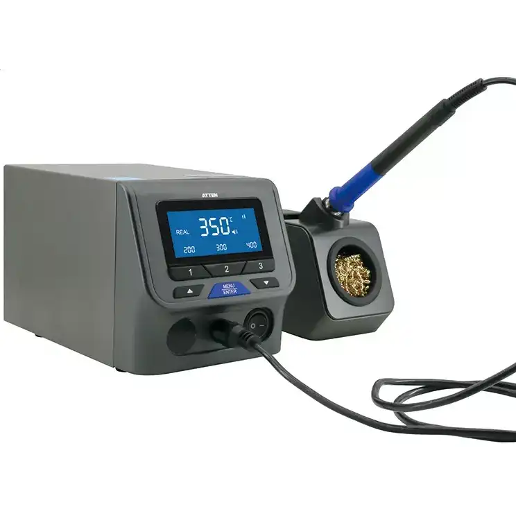 да, 80, официальная гарантия производителя, пластик, 220, медь, конус, паяльная станция, Atten, www.atten.com, 480, 1.5, Комплектация: Паяльная станция с паяльником. Инструкция. Паяльное жало серии Atten 900M. Подставка для паяльника. Кабель питания. Губка., ST-80