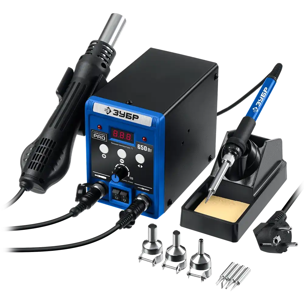паяльная станция, форма жала: конус, мощность: 650 Вт, напряжение: 220 В, макс. температура нагрева: 500 °С