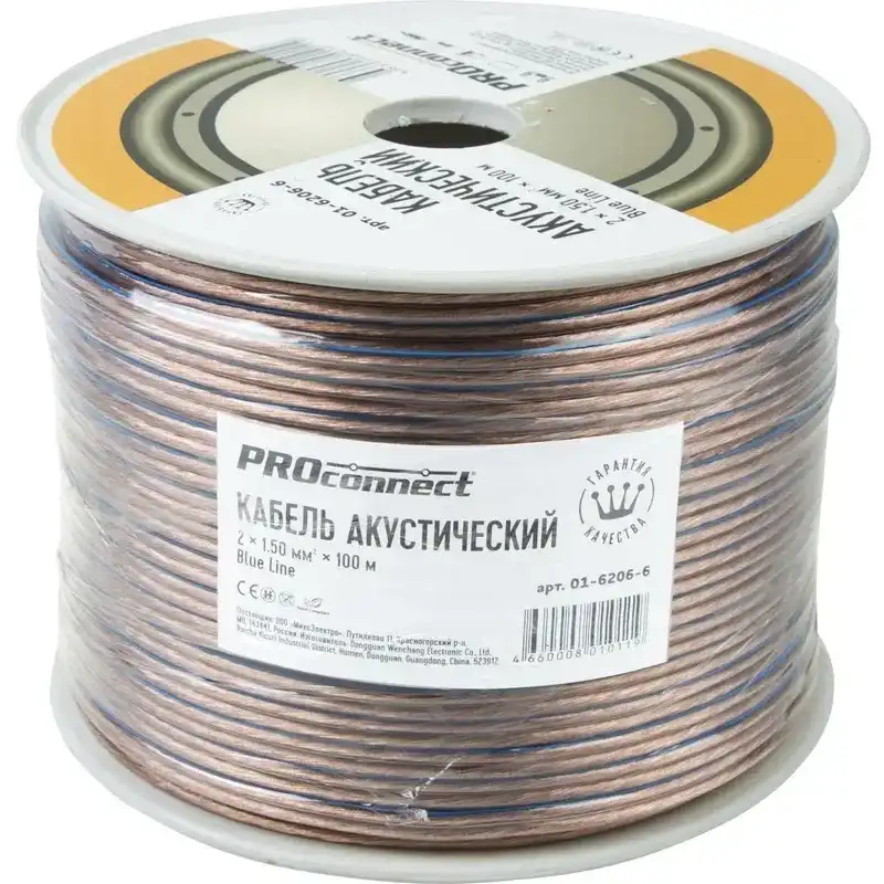 100, PROconnect, www.proconnect.su, кабель, нет, без разъёмов, нет, прозрачный, синий, для акустических систем, для наушников и гарнитур, микрофонный, - жилы кабеля изготовлены из бескислородной высокоочищенной композитной меди, которая обеспечивает акустическому кабелю максимальное качество сигнала и сохранение всего диапазона частот; - две жилы ка, 01-6206-6