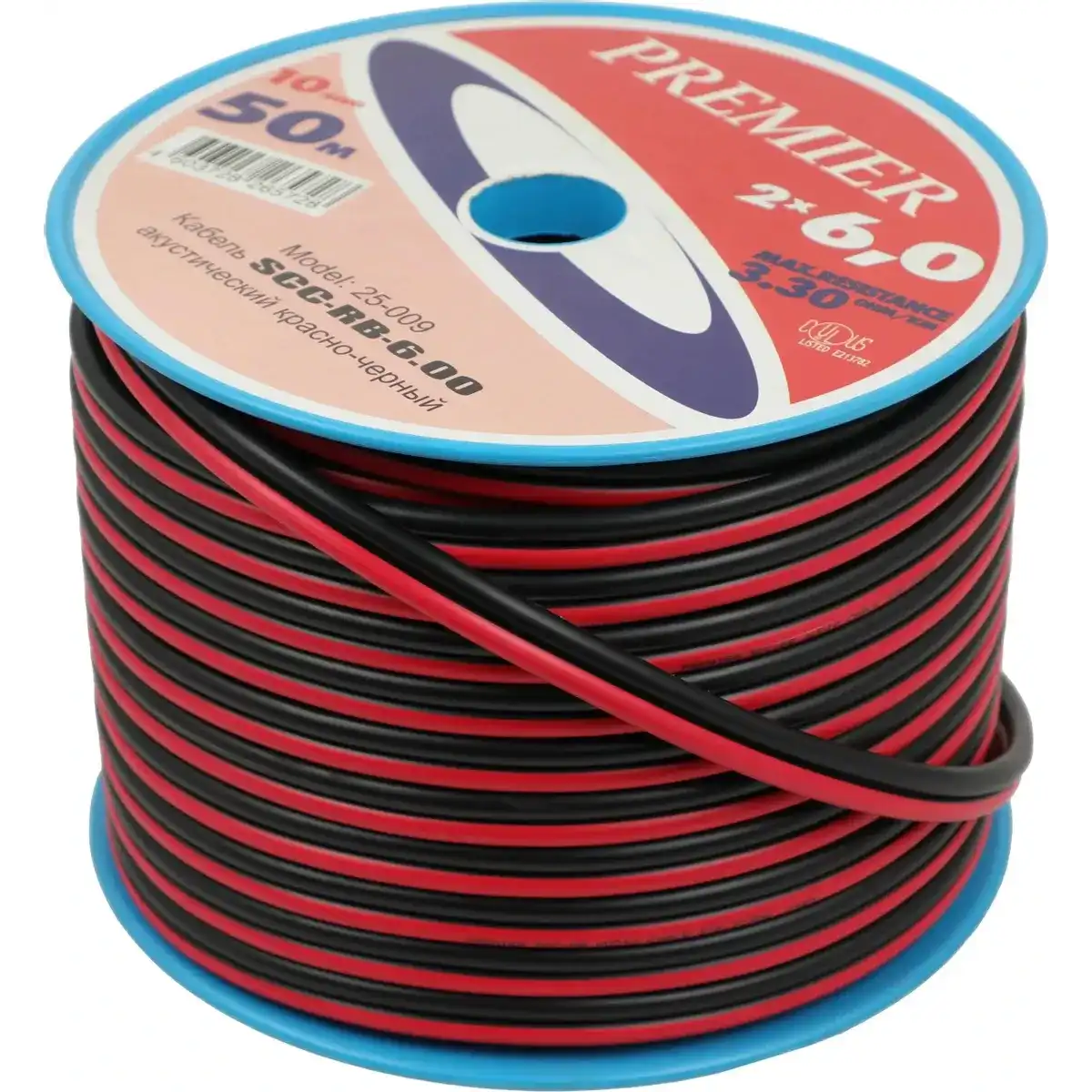 красный, чёрный, 50, кабель, для акустических систем, нет, без разъёмов, нет, premier-av.ru, PREMIER, 25-009 50