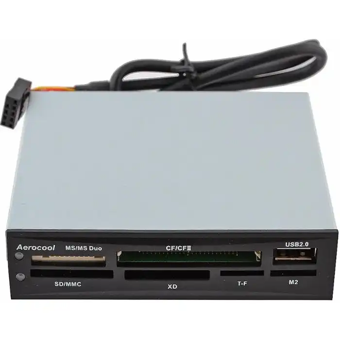 внутренний 3.5' кардридер, подключение через USB 2.0, поддержка карт SD, MMC, microSD, Compact Flash, xD, Memory Stick, Memory Stick Duo, Memory Stick Micro, USB 2.0