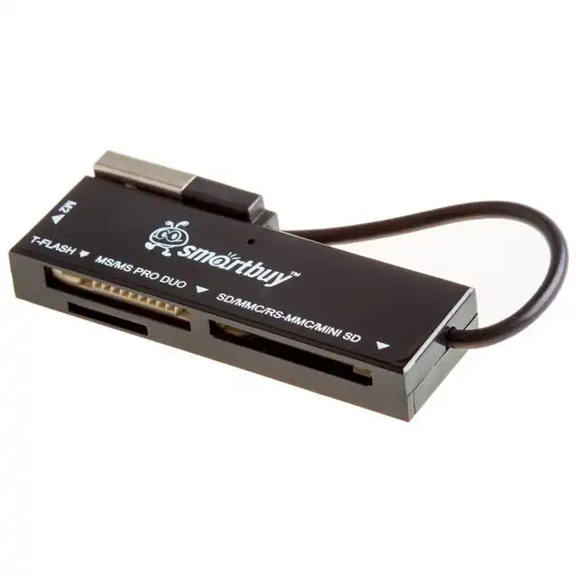 внешний кардридер, подключение через USB 2.0, поддержка карт SD, MMC, microSD, xD, Memory Stick Micro, TransFlash (TF), RS-MMC
