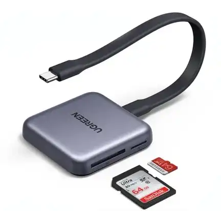 внешний кардридер, подключение через USB Type-C, поддержка карт SD, microSD