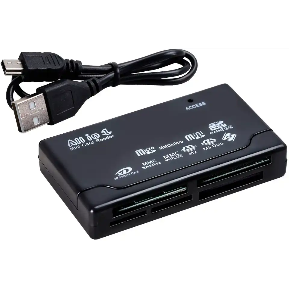 внешний кардридер, подключение через USB 2.0, поддержка карт SD, MMC, Compact Flash, xD, Memory Stick Duo, miniSD, Memory Stick Micro