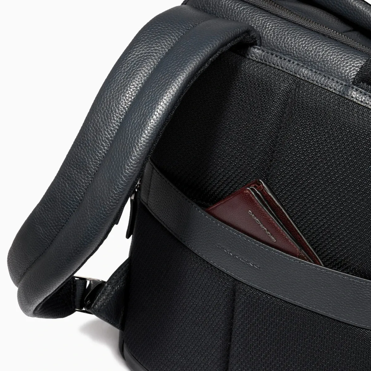 1.38 кг, синий, рюкзак, 2, 14, Piquadro, натуральная кожа, www.piquadro.com/ru/, CA6289MOS/BLU, петля для крепления на ручке чемодана, карман для бутылки, карман для внешнего аккумулятора, карман для зонта, отделение для планшета, RFID-защита кармана для карт/паспортов, амортизирующий отсек для ноутбука, кабель с замком, 14, 280 x 370 x 130 мм