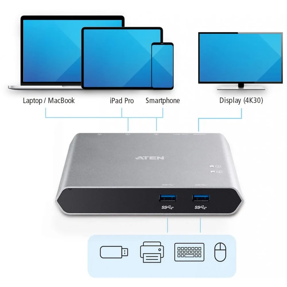 подключение USB Type-C, макс. кол-во дисплеев: 1, макс. разрешение: 4K (2160p), питание от USB, мощность PD: до 60 Вт, материал: металл, цвет: серый