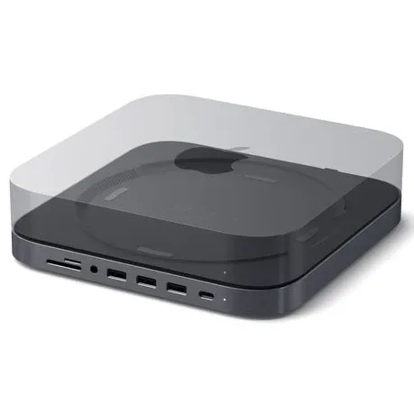 USB док станция с подставкой для Mac Mini, порты: 1x USB-C, 3 x USB, 3,5mm AUX, SD, microSD