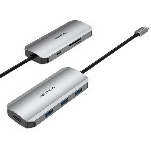 подключение USB Type-C, макс. кол-во дисплеев: 1, питание от USB, мощность PD: до 100 Вт, материал: металл, цвет: серый