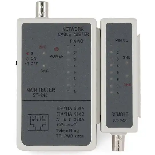 тестер для RJ-45, RG-58, определяет неисправность в кабельной сети, тестирует кабель на обрыв, замыкание, проверяет целостность экрана и правильность разводки кабеля