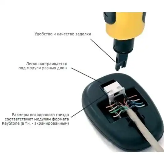 инструмент для заделки витой пары (камера хранения, регулировка ударного эффекта, нож в комплект не входит)