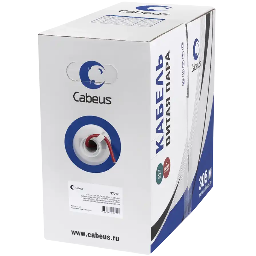 красный, 12 мес., Cabeus, www.cabeus.ru, 305, внутри помещений, 5e, 4 пары, UTP, одножильный (solid), медь, LSZH (FRNC, LSNH), 24AWG (0.511мм), UTP-4P-Cat.5e-SOLID-LSZH-RD/9778c