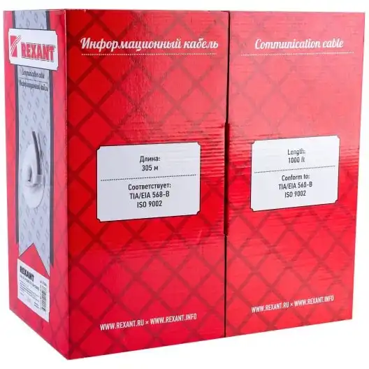 серый, 12 мес., Rexant, www.rexant.ru, 305, внутри помещений, 5e, 4 пары, многожильный (stranded), UTP, ПВХ (PVC), 24AWG (0.511мм), 01-0044