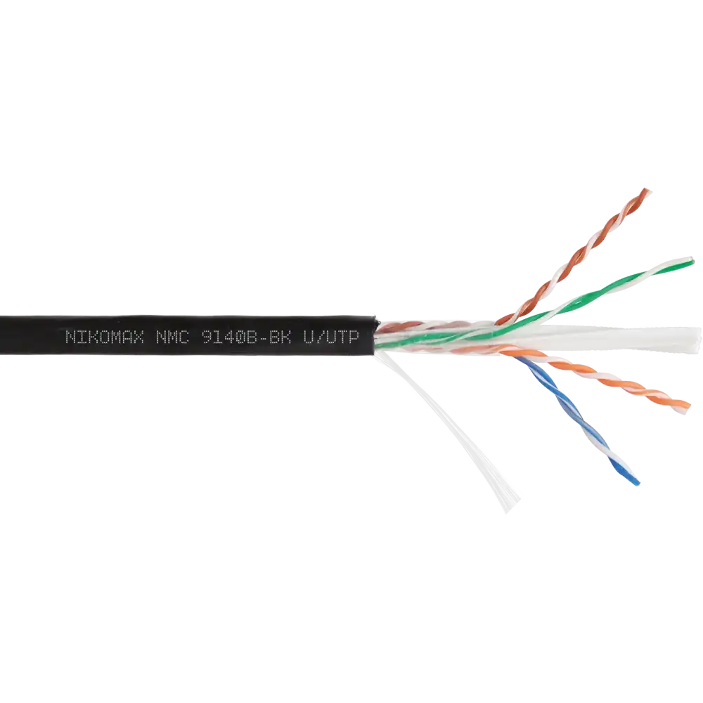 чёрный, 12 мес., 305, полиэтилен (PE), 4 пары, NIKOMAX, www.nikomax.ru, UTP, 6, одножильный (solid), уличное, медь, 23AWG (0.574мм), NMC 9140B-BK