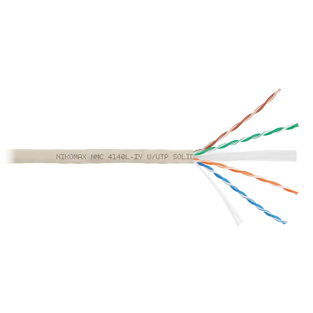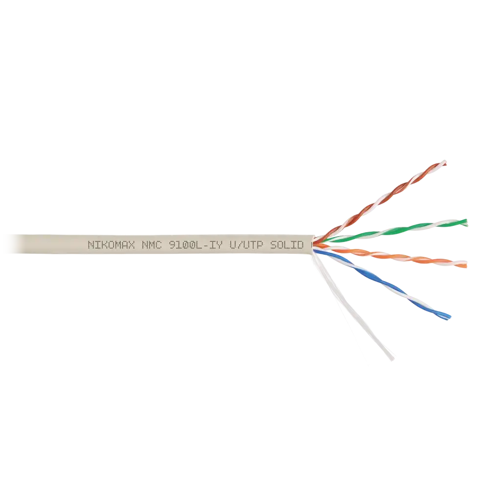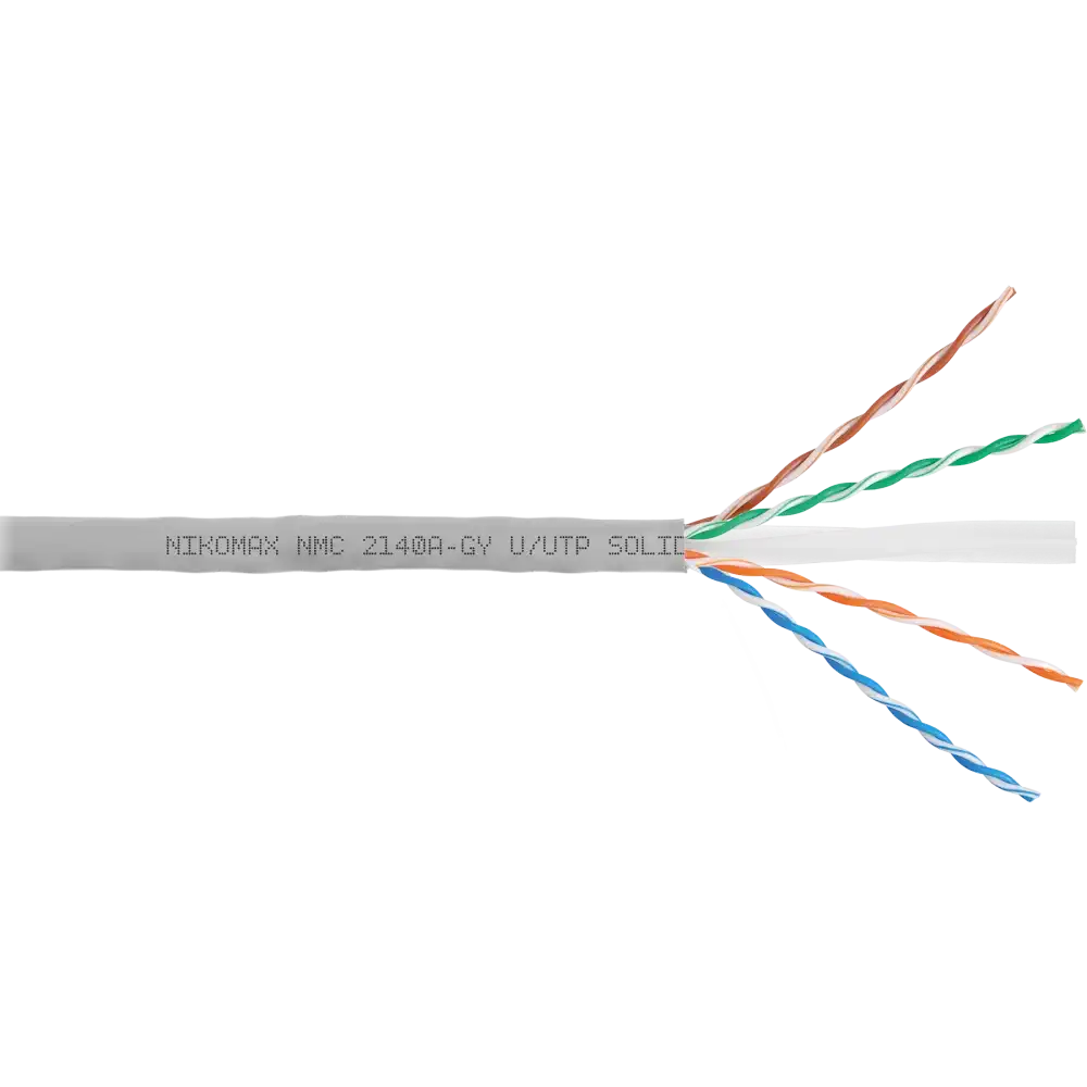 серый, 12 мес., 305, внутри помещений, 5e, 4 пары, NIKOMAX, www.nikomax.ru, UTP, одножильный (solid), медь, 24AWG (0.511мм), HDPE (ПВП), NMC 9100L-IY