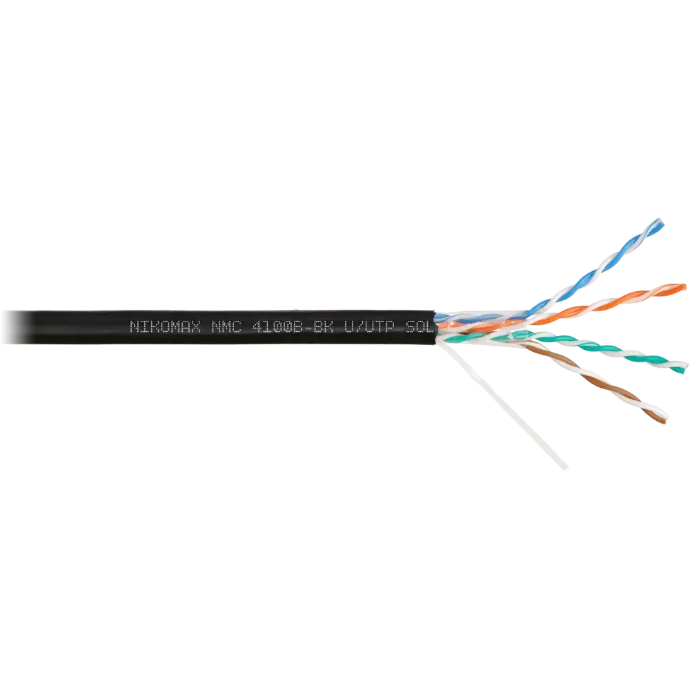 чёрный, 12 мес., 305, полиэтилен (PE), внутри помещений, 5e, 4 пары, NIKOMAX, www.nikomax.ru, UTP, одножильный (solid), медь, 24AWG (0.511мм), NMC 4100B-BK