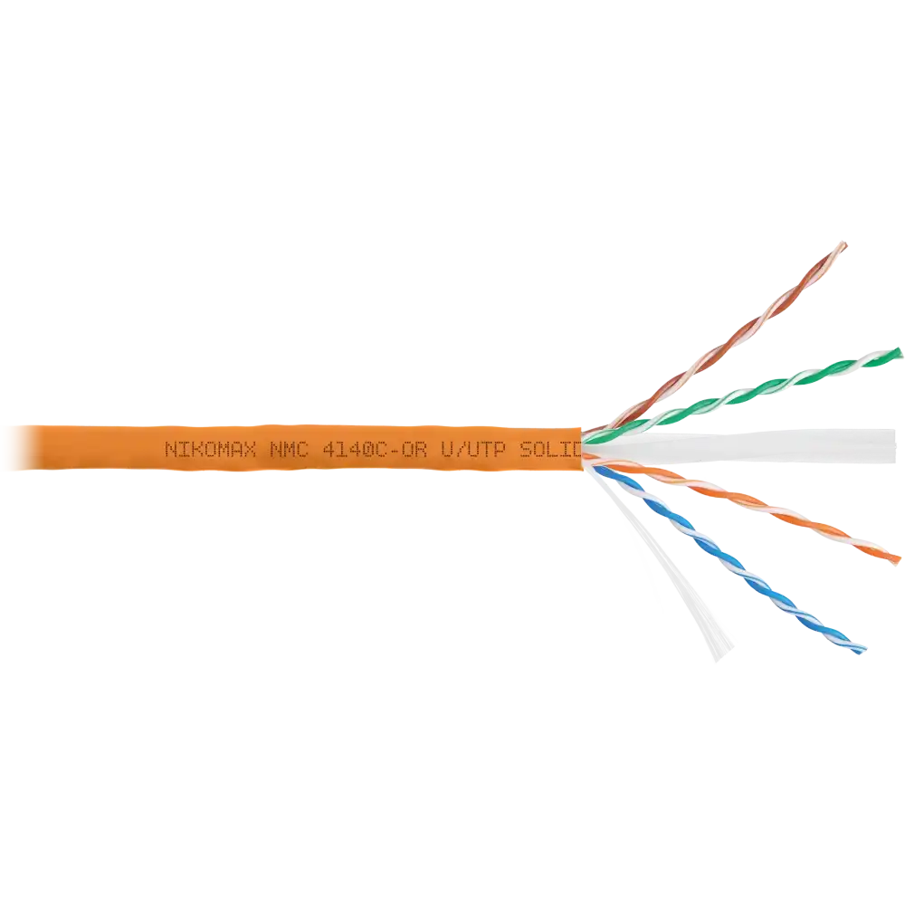 12 мес., оранжевый, 305, внутри помещений, 4 пары, NIKOMAX, www.nikomax.ru, UTP, 6, одножильный (solid), медь, 23AWG (0.574мм), NMC 4140C-OR