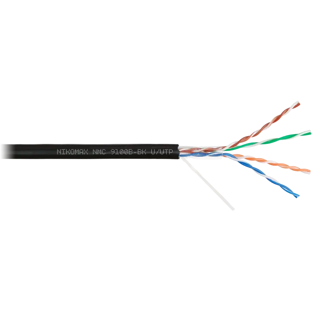 чёрный, 12 мес., 305, полиэтилен (PE), 5e, 4 пары, NIKOMAX, www.nikomax.ru, UTP, одножильный (solid), уличное, медь, 24AWG (0.511мм), NMC 9100B-BK