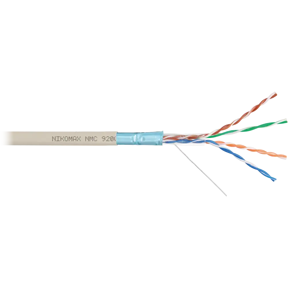 серый, 12 мес., 305, внутри помещений, 5e, 4 пары, NIKOMAX, www.nikomax.ru, одножильный (solid), медь, FTP, 24AWG (0.511мм), LSLTx (Low Smoke Low Toxic), NMC 9200L-IY