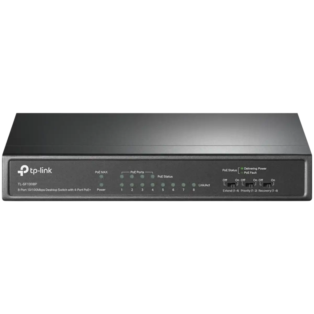 неуправляемый коммутатор, пропускная способность: 1.6 Гбит/с, 8xRJ-45 (100 Мбит/с), порты с PoE: 4