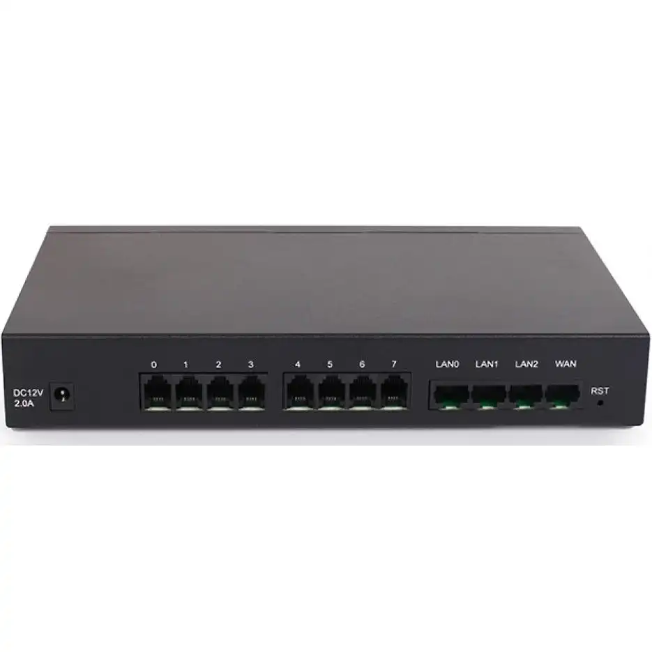 голосовой VoIP - шлюз с 8 FXS портами и 4 портами Ethernet, позволяющий обеспечить соединение аналоговых телефонов и факсов с IP-сетями, подходит для использования в среде малого бизнеса, в удаленных офисах или бизнес-филиалах