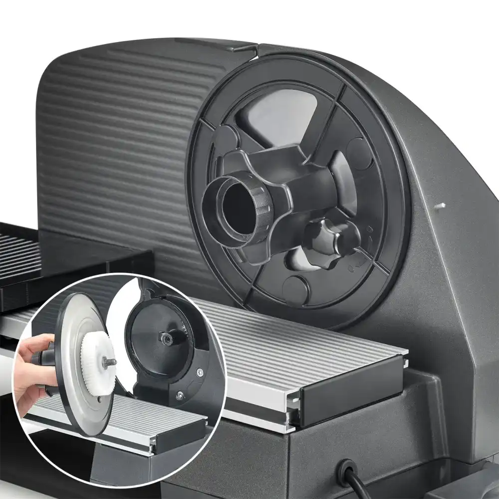 Превратите процесс приготовления пищи в настоящее искусство с ломтерезкой GRAEF M95. Этот прибор станет вашим надежным помощником на кухне, открывая безграничные возможности для кулинарного творчества и идеального сервирования. Благодаря своей мощности и продуманной конструкции, он легко справляется с самыми разными задачами, экономя ваше время и силы. Сердцем этой модели является высокопроизводительный двигатель мощностью сто семьдесят ватт. Такая мощность гарантирует безупречную работу даже с твердыми и волокнистыми продуктами. Вы сможете без усилий нарезать охлажденное мясо для ароматной буженины, твердые сорта сыра, а также сочные овощи и фрукты. Нож из высококачественной нержавеющей стали диаметром сто семьдесят миллиметров обеспечивает идеально ровные, аккуратные и красивые ломтики с каждым резом. Он сохраняет остроту на долгое время, гарантируя стабильно высокий результат. Одной из ключевых особенностей данной ломтерезки является возможность регулировки толщины нарезки вплоть до двадцати миллиметров. Это позволяет вам с легкостью приготовить как тончайшие слайсы для карпаччо или изысканных бутербродов, так и толстые, сочные куски мяса для гриля или овощные стейки. Универсальность прибора впечатляет: от нежнейшей прошутто до плотной копченой колбасы — вы получаете полный контроль над конечным результатом. Безопасность при эксплуатации является абсолютным приоритетом. Модель оснащена надежной защитой от случайного включения, что делает ее использование максимально безопасным даже в семье с детьми. Продуманный механизм блокировки предотвращает непреднамеренный запуск, давая вам уверенность в каждом использовании. Долговечность и стиль идут рука об руку в этом устройстве. Прочный металлический корпус не только придает ломтерезке солидный и респектабельный вид, но и обеспечивает исключительную устойчивость на рабочей поверхности. Он надежно гасит вибрации во время работы и рассчитан на многолетнюю интенсивную эксплуатацию, оставаясь неизменно стабильным. Ломтерезка GRAEF M95 — это разумное вложение для тех, кто ценит безупречное качество, эффективность и эстетику на своей кухне. Она превращает рутинную нарезку продуктов в быстрый, приятный и безопасный процесс, позволяя вам сосредоточиться на самом главном — создании кулинарных шедевров для себя и своих близких.