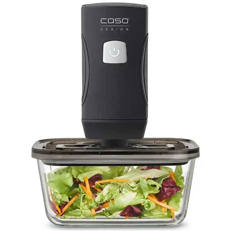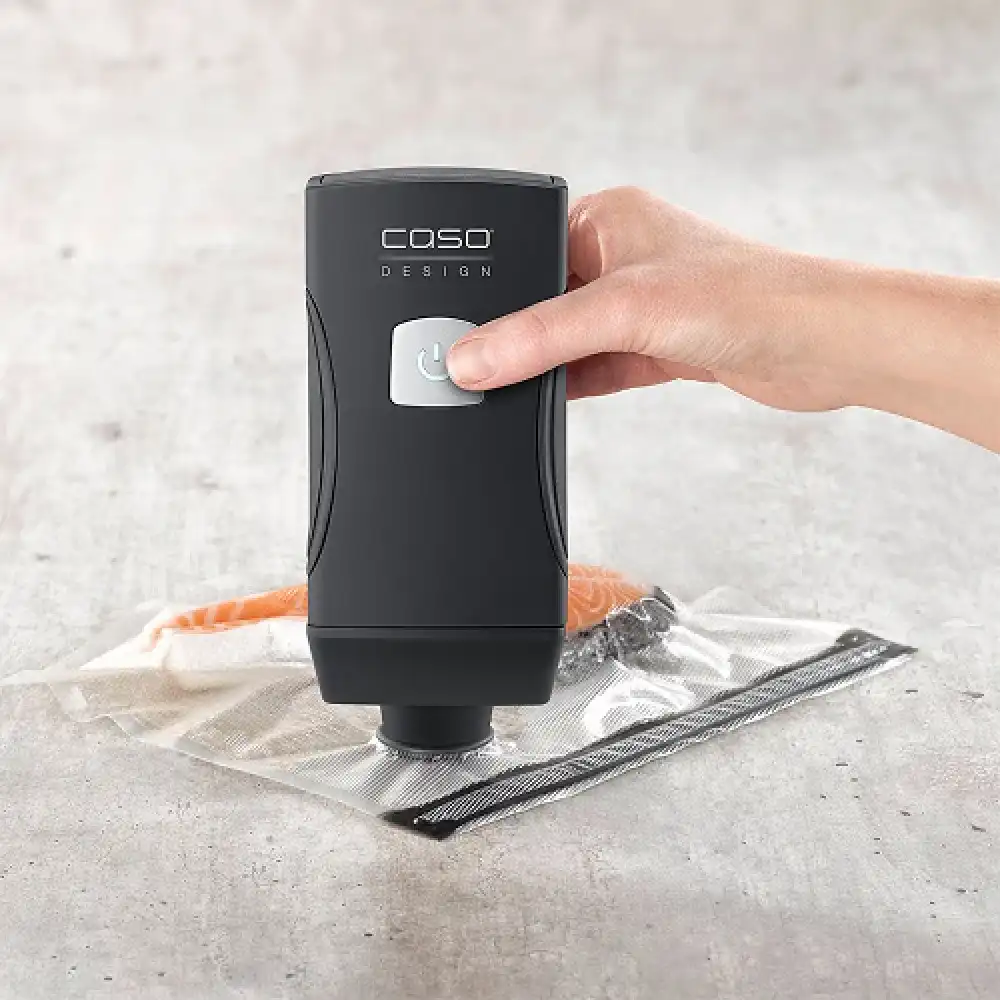 Вакуумный упаковщик CASO Vacu OneTouch Pro — это компактное и портативное устройство, предназначенное для вакуумной упаковки различных продуктов в домашних условиях, офисах и гостиницах. С его помощью можно продлить свежесть мяса, рыбы, овощей, фруктов и других продуктов до 8 раз дольше по сравнению с обычными методами хранения. Управление осуществляется одной рукой, что обеспечивает простоту и удобство использования. Устройство оснащено долговечным литий-ионным аккумулятором, обеспечивающим до 150 минут работы без подзарядки, и может работать даже во время зарядки. Светодиодный индикатор отображает состояние заряда: белый цвет — аккумулятор заряжен, красный — требуется подзарядка. Автоматическая остановка при достижении необходимого вакуума и функция автоотключения через 2 минуты при случайном включении повышают безопасность использования. В комплекте поставляются 10 ZIP-пакетов разных размеров, 2 ZIP-замка и кабель для зарядки USB-C. Устройство обеспечивает производительность насоса до 12 л/мин при давлении 0,4 бар, что позволяет быстро и эффективно удалять воздух из пакетов и контейнеров. Компактные размеры (4,5 x 19,5 x 4,5 см) и вес 0,244 кг делают его удобным для хранения и транспортировки. Корпус выполнен из прочного пластика, обеспечивающего долговечность устройства. Очистка и уход за вакуумным упаковщиком не требуют особых усилий благодаря съемному уплотнителю. CASO Vacu OneTouch Pro идеально подходит для использования дома или в поездках, позволяя сохранять продукты свежими без необходимости в больших стационарных вакуумных упаковщиках.