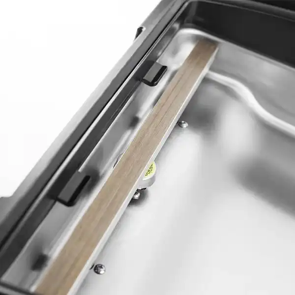 Вакуумный упаковщик Caso VacuChef 70 позволяет упаковать все, включая жидкости. Он оснащен сухим, не требующим обслуживания 2-цилиндровым поршневым насосом и сварочной планкой 30 см. Имеет удобную конструкцию с низким профилем, оснащенную прозрачной крышкой из закаленного стекла, что обеспечивает лучшую видимость процесса упаковки, а также простой и понятный сенсорный дисплей. Профессиональный вакуумный упаковщик VacuChef 70 предназначен для работы с любыми продуктами, в том числе с жидкими ингредиентами — то, чего обычные бескамерные вакуумные упаковщики просто не могут сделать. Большинство вакуумных упаковщиков высасывают воздух из вакуумного пакета, который затем запечатывается. Проблема заключается в том, что жидкости могут также всасываться из пакета, что приводит к загрязнению пленки маслом или жидкостью, что приведет к неполной вакуумации. VacuChef 70 работает иначе. Он не только достигает почти 100% уровня вакуумации, но и удаляет воздух из всей камеры, а не только из пакета. Это значит, что давление воздуха становится одинаковым как внутри, так и снаружи пакета, и жидкость не вытягивается. Как только пакет вакуумирован, в камеру возвращается нормальное давление , оставляя вакуум внутри пакета. Корпус и внутренняя камера изготовлены из нержавеющей стали, по бокам есть удобные ручки для перемещения прибора. Верхняя крышка из закаленного стекла имеет прозрачную область, чтоб вы могли наблюдать за процессом упаковки. Управляется вакууматор с помощью сенсорной панели с дисплеем. Настройки очень гибкие — вы можете регулировать время и степень вакуума процесса упаковки продуктов. Также есть встроенный манометр. Мощный двухпоршневый насос работает со скоростью откачки до 70 л/минуту, шов двойной, длина сварной планки — 30 см.