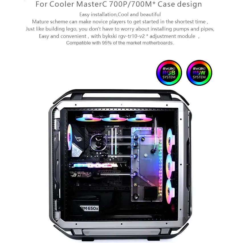 Bykski Distro или распределительные плиты — это уникальный способ оснастить ваш охлаждающий контур. Они разработаны специально для корпуса и идеально подходят для создания удивительных контуров охлаждения и потрясающего внешнего вида. Порты выстроены в линию, чтобы обеспечить идеальную совместимость с каждым охлаждающим устройством.