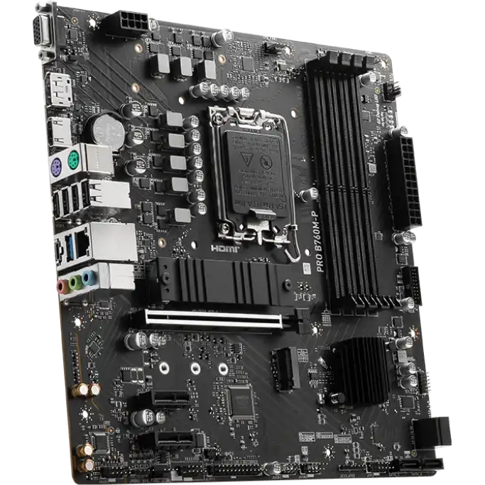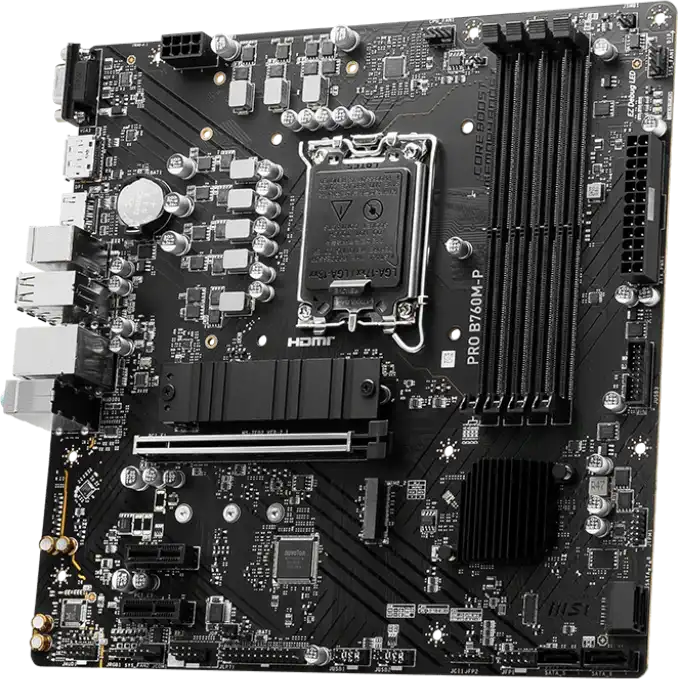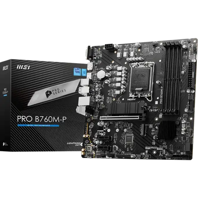 MSI PRO B760M-P — это высококачественная материнская плата, разработанная специально для пользователей, которые ценят надежность и производительность. Эта материнская плата поддерживает процессоры с разъемом LGA 1700 и оснащена чипсетом Intel B760, обеспечивая стабильную работу и высокую производительность. Одной из особенностей материнской платы MSI PRO B760M-P является поддержка памяти DDR5, что обеспечивает быструю и эффективную работу системы. С четырьмя слотами памяти вы сможете установить до 128 ГБ оперативной памяти и наслаждаться плавным и быстрым выполнением задач. Плата также поддерживает RAID 0, 1, 5, 10, что позволяет вам создавать надежные хранилища данных и обеспечивать защиту информации. Интегрированное видео обеспечивает отличное качество изображения при использовании процессоров с видеоядром, а 8-канальный звук (7.1) с аудио-контроллером Realtek ALC897 позволяет наслаждаться кристально чистым звуком. Сетевой контроллер Realtek RTL8111H обеспечивает стабильное и быстрое подключение к сети, что делает эту материнскую плату отличным выбором для игроков и профессионалов в области мультимедиа. Форм-фактор mATX делает ее удобной для установки в компактных корпусах, а тип поставки Retail гарантирует, что вы получите все необходимые аксессуары для установки. В целом, MSI PRO B760M-P — это надежная и мощная материнская плата, которая обеспечит отличную производительность и функциональность вашей системы. Независимо от того, занимаетесь ли вы игровой деятельностью, мультимедиа или профессиональными задачами, эта плата будет отличным выбором для вашего компьютера.