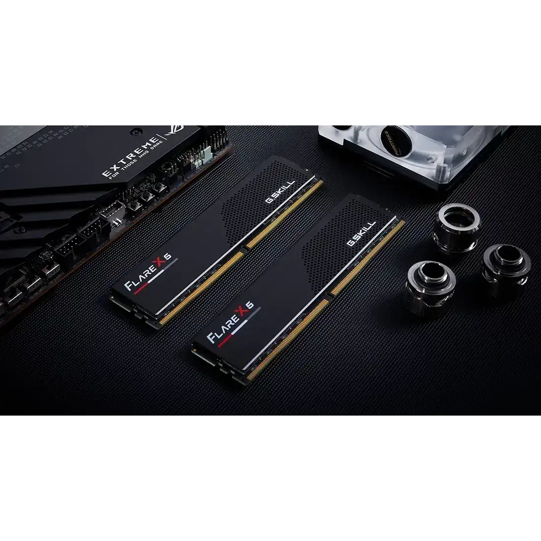 Оперативная память G.Skill Flare X5 (F5-6000J3244G64GX2-FX5) — это мощное решение для современных ПК, разработанное для тех, кто ценит высокую производительность и стабильность. Этот комплект из двух модулей по 64 Гб каждый обеспечивает общий объём памяти 128 Гб, что делает его идеальным выбором для профессиональных рабочих станций, требовательных игр и ресурсоёмких задач, таких как 3D-рендеринг, видеомонтаж и обработка больших данных. Благодаря поддержке стандарта DDR5 и тактовой частоте 6000 МГц, эта память предлагает выдающуюся скорость работы и отзывчивость системы. Одним из ключевых преимуществ G.Skill Flare X5 является её высокая пропускная способность — 48000 Мб/с, что значительно ускоряет обмен данными между процессором и оперативной памятью. Это особенно важно для многозадачности и работы с приложениями, требующими больших объёмов оперативной памяти. Низкие тайминги (CL32, tRCD44, tRP44, tRAS96) обеспечивают минимальные задержки, что положительно сказывается на общей производительности системы. Напряжение питания 1.4 В гарантирует стабильную работу даже при высоких нагрузках, а поддержка технологии AMD EXPO (Extended Profiles for Overclocking) позволяет легко разогнать память для достижения ещё более впечатляющих результатов. Эта функция особенно полезна для энтузиастов, желающих выжать максимум из своего оборудования без необходимости ручной настройки параметров в BIOS. Форм-фактор DIMM и низкопрофильный дизайн (высота модуля всего 33 мм) делают Flare X5 совместимой с большинством современных материнских плат и систем охлаждения. Чёрные радиаторы не только эффективно рассеивают тепло, но и придают памяти стильный внешний вид, который гармонично впишется в любую сборку. Пассивное охлаждение обеспечивает надёжную работу даже при длительных нагрузках, предотвращая перегрев и снижая риск троттлинга. G.Skill Flare X5 — это не просто оперативная память, а инструмент для тех, кто стремится к максимальной производительности. Благодаря сочетанию высокой частоты, большого объёма и оптимизированных таймингов, она станет отличным выбором для геймеров, профессионалов и всех, кто ценит скорость и надёжность. Перед покупкой не забудьте проверить, поддерживает ли ваша материнская плата такие объёмы памяти на один модуль, чтобы гарантировать полную совместимость и стабильную работу системы. С этим комплектом оперативной памяти ваш ПК получит новый уровень мощности, позволяя легко справляться с самыми сложными задачами. G.Skill Flare X5 — это инвестиция в будущее, обеспечивающая запас производительности на долгие годы.