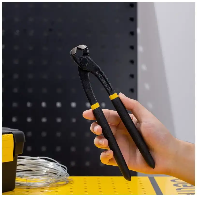 Клещи монтажные вязальные Deli DL111010 изготовлены из прочной углеродистой стали, обеспечивающей высокую износостойкость и надежность при интенсивных нагрузках. Удобные обливные рукоятки гарантируют комфортный хват во время работы. Оптимальная длина 230мм делает инструмент маневренным и универсальным в применении. Идеальный выбор для профессионального монтажа, вязки арматуры и работы с проволокой. Благодаря прочной конструкции и эргономичному дизайну клещи подходят для строительных, электромонтажных и ремонтных работ. Они обеспечивают точный захват и фиксацию материалов, значительно ускоряя процесс монтажа. Ключевые преимущества: Углеродистая сталь– повышенная прочность и долговечность Обливные рукоятки– удобство использования и защита от соскальзывания Оптимальный размер 250 мм– маневренность и универсальность Надежный захват– эффективная работа с проволокой и арматурой