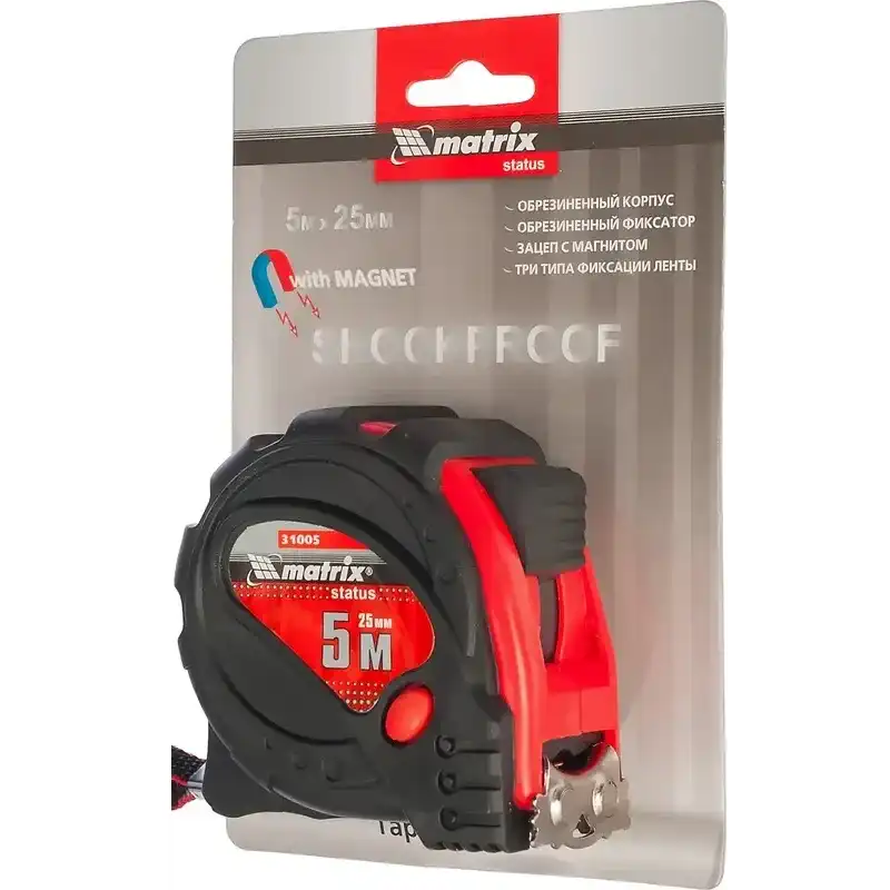 Отправляясь на строительный объект, в мастерскую или просто занимаясь домашним ремонтом, вы точно знаете: точность и надежность измерений — это основа безупречного результата. Именно для таких задач создана рулетка Matrix 31005, ваш незаменимый помощник в любом проекте, где важен каждый миллиметр. Сердцем этой рулетки является прочное и гибкое полотно длиной пять метров, изготовленное из высококачественной нержавеющей стали. Этот материал обеспечивает великолепную износостойкость и защиту от коррозии, гарантируя, что инструмент будет служить вам верой и правдой долгие годы даже в условиях повышенной влажности или запыленности. Ширина ленты составляет двадцать пять миллиметров, что делает ее достаточно широкой для удобного считывания показаний и устойчивой к излому при работе на значительном вылете. Для максимального удобства и наглядности нанесена четкая разметка в сантиметрах, а яркий желтый цвет ленты отлично контрастирует с черными цифрами, позволяя без труда производить замеры даже при недостаточном освещении. Корпус рулетки выполнен из ударопрочного пластика и имеет специальное резиновое покрытие. Такая конструкция не только эффективно гасит случайные удары, но и обеспечивает надежный, уверенный хват. Рулетка не выскользнет из руки в самый ответственный момент, что особенно важно при работе в перчатках. Встроенный механизм фиксации ленты позволяет зафиксировать ее в нужном положении, освобождая обе руки для разметки или сверки данных. Это простое, но гениальное решение кардинально повышает эффективность работы. Одной из ключевых особенностей данной модели является наличие магнитного зацепа. Эта функция становится настоящим спасением, когда необходимо произвести замер в одиночку. Металлический наконечник надежно примагничивается к стальным поверхностям, позволяя закрепить ленту без посторонней помощи и без риска ее соскальзывания. Больше не нужно просить кого-то подержать второй конец или использовать подручные средства — магнитный зацеп делает процесс самостоятельной работы быстрым и комфортным. Продуманность рулетки Matrix 31005 проявляется и в мелочах. На корпусе вы найдете прочную металлическую клипсу, с помощью которой инструмент можно надежно закрепить на поясе, кармане или ремне, всегда имея его под рукой. Дополнительно предусмотрен шнурок для подвеса, что дает альтернативный и не менее удобный способ носить рулетку с собой. Рулетка Matrix 31005 — это гармоничное сочетание эргономики, долговечности и продуманного функционала. Это не просто измерительный инструмент, а ваш надежный партнер, готовый к любым задачам. Выбирая ее, вы выбираете профессионализм, удобство и уверенность в точности каждого проведенного замера.