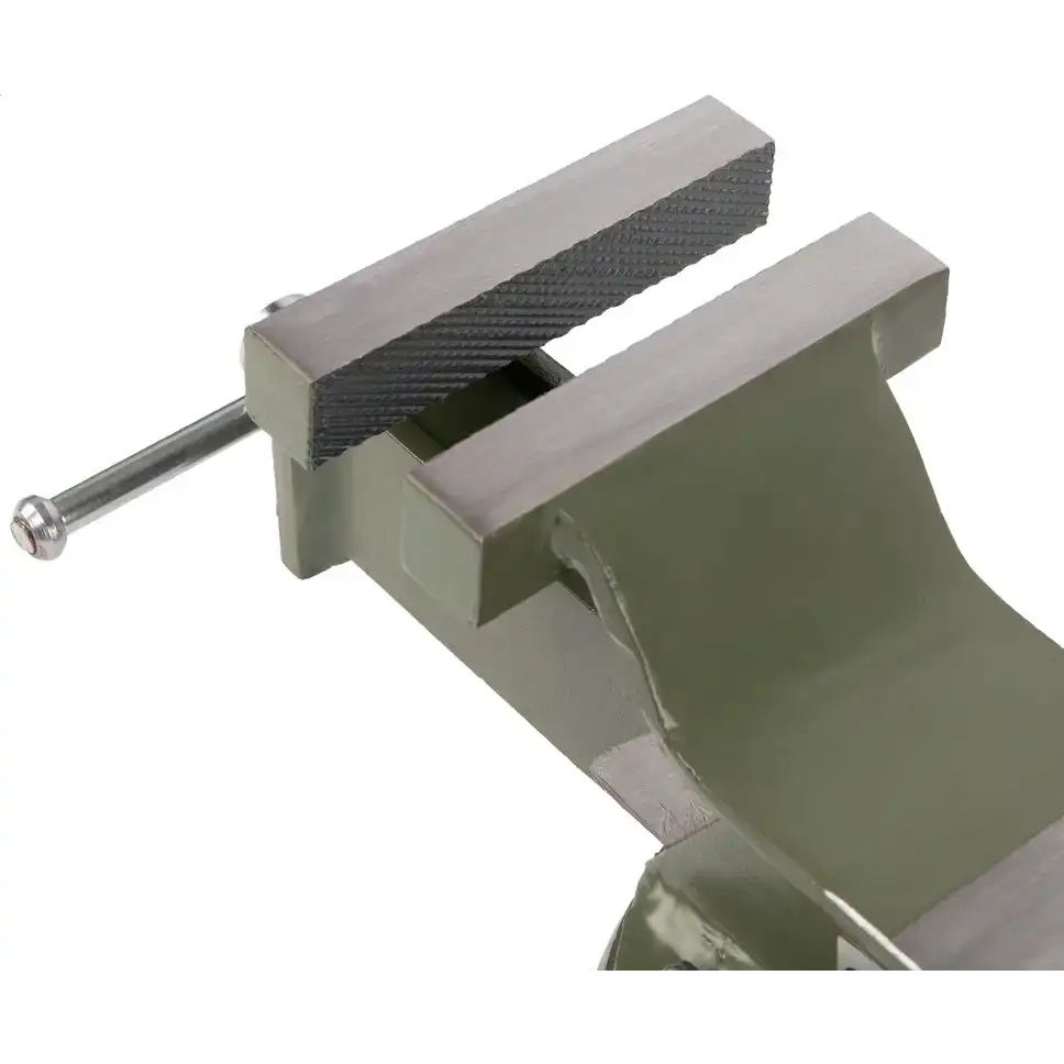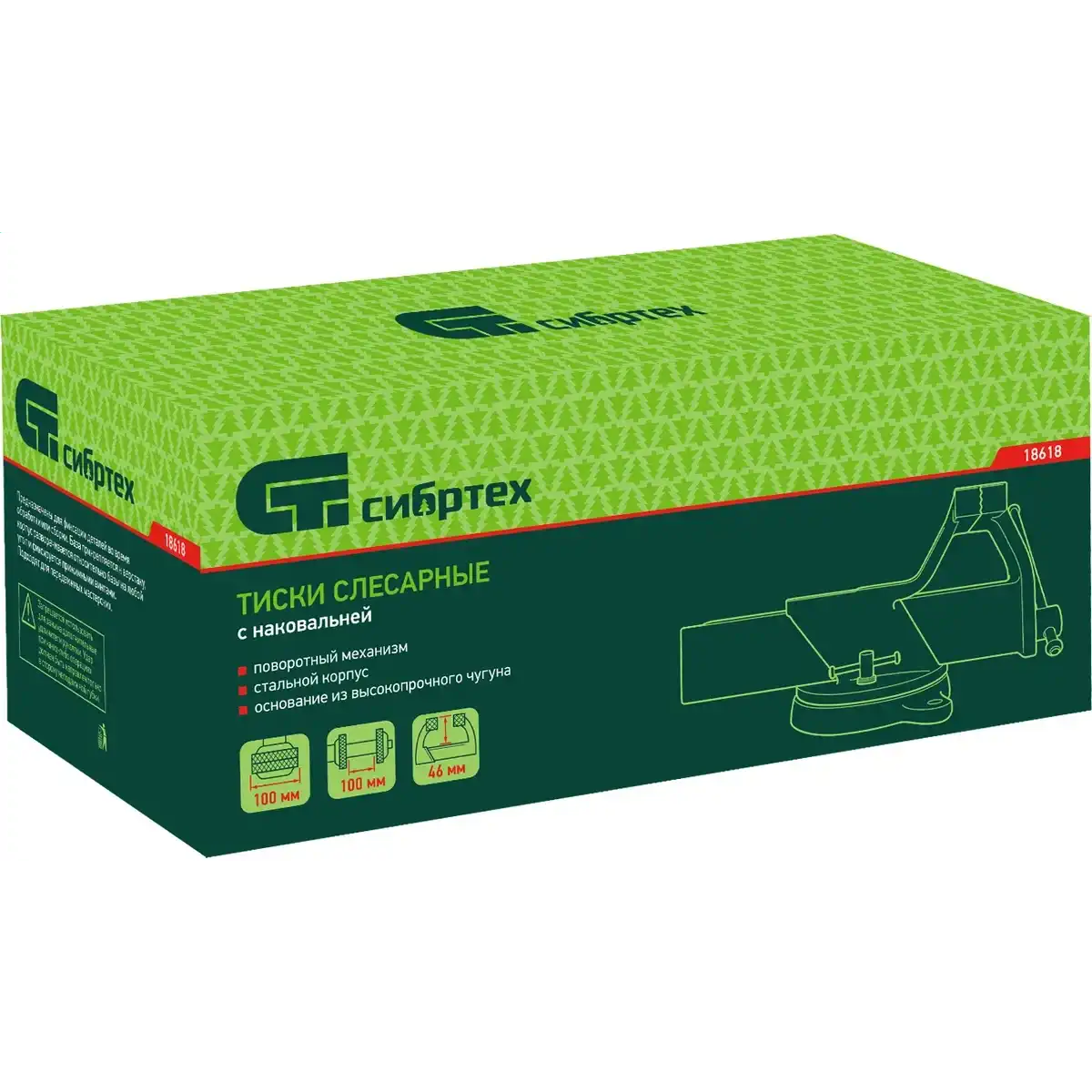 Стальные слесарные тиски Сибртех 18618 с поворотным механизмом и прижимными винтами имеют ширину губок 100 мм и предназначены для жесткой фиксации деталей. Используются для сверления, шлифования, пиления, выполнения сборочных и других работ. Тиски вращаются на 360°, что позволяет придать заготовке оптимальное положение. Приспособление будет полезно в мастерской, на даче и в гараже. Преимущества: Легкая и надежная конструкция — тиски изготовлены из прочной стали и рассчитаны на длительное использование Простая установка — в основании имеются отверстия для крепления к верстаку Дополнительные возможности — на корпусе есть наковальня для выравнивания заготовок при помощи молотка Надежная фиксация — губки с рельефной поверхностью не скользят по поверхности детали Аккуратная работа — чтобы избежать повреждения заготовок, на губки можно установить защитные накладки (приобретаются отдельно)