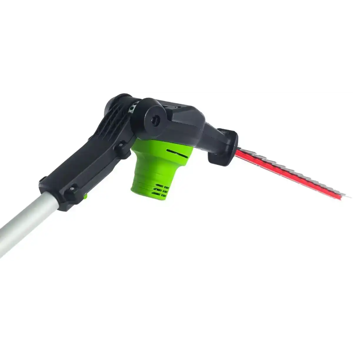 Представьте себе идеально ухоженный сад, где каждому кусту и живой изгороди придана безупречная форма. Достичь такого результата теперь проще, чем кажется, благодаря кусторезу Greenworks G40PSH. Этот инструмент открывает новую эру в садовом уходе, где мощь и точность сочетаются с невероятным удобством и свободой от проводов. Ощутите полную независимость в работе, ведь этот кусторез работает от современной аккумуляторной системы напряжением 40 В. Вам больше не мешают кабели, не нужно таскать за собой бензобак и мириться с шумом и выхлопами. Вы получаете полную мобильность и возможность добраться до любого уголка вашего участка без лишних хлопот. Важно отметить, что для работы вам потребуется совместимый аккумулятор Greenworks и зарядное устройство, которые приобретаются отдельно. Это позволяет гибко подойти к выбору комплектации, особенно если у вас уже есть другие инструменты этой экологичной платформы. Невероятная производительность инструмента обеспечивается высокой частотой ходов режущего полотна, которая составляет 3000 движений в минуту. Эта внушительная цифра на практике означает быструю и чистую стрижку даже самых плотных и трудных кустарников. Острый нож с длиной лезвия 510 миллиметров легко охватывает большую площадь, позволяя сформировать ровную плоскость живой изгороди или придать сложную фигурную форму отдельно стоящим растениям за считанные минуты. Благодаря солидной длине рабочей части вы справляетесь с задачами быстрее, экономя свои силы и время. Конструкция режущего механизма продумана до мелочей. Расстояние между зубьями лезвия оптимизировано и составляет 30 миллиметров, что делает инструмент универсальным солдатом в вашем садовом арсенале. Он не только виртуозно справляется с обрезкой молодой поросли и формовкой крон, но и обладает достаточной мощью и надежностью для перерезания более твердых сучков и веток. Вы получаете два инструмента в одном: это и мастер художественной стрижки, и уверенный помощник в прореживании зарослей. Работа с кусторезом Greenworks G40PSH становится настоящим удовольствием. Отсутствие вредных выбросов делает заботу о саду безопасной для вас и окружающей среды, а низкий уровень вибрации и шума позволяет наслаждаться процессом, не тревожа домочадцев и соседей. С этим инструментом вы не просто поддерживаете порядок, вы создаете произведение искусства, воплощаете свои самые смелые ландшафтные замыслы, превращая сад в предмет своей гордости. Это инвестиция в красоту вашего участка и в ваше собственное комфортное будущее на природе.